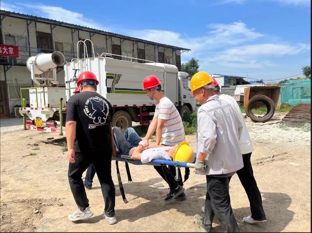 在此次应急演练活动中,警戒组、疏散组首当其冲对事故现场进行警戒和人员疏散;救护组、后勤组沉着应对,积极抢救伤员和物资;抢险组操作熟练扑救快速,及时将火灾扑灭。随后,现场演练模拟一名施工人员将手臂烧伤,救护人员对其进行了伤口清洗,在将伤口进行了包扎处理后将其送医进行医治。整个演练过程紧张而有序地展开,通过各应急小组快速准确的应对,使火灾事故得到了有效控制,大家互相配合,圆满完成了此次应急救援演练任务。