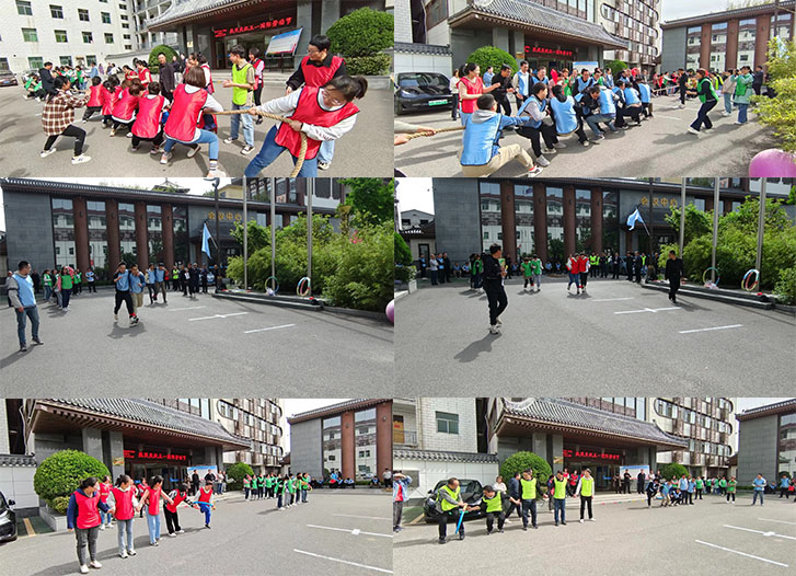 上午9时,活动在“咱们工人有力量”大合唱中拉开帷幕,在河津市音乐家协会张陆老师的引领下,大家气势轩昂,歌声洪亮,唱出了激情、唱出了力量、唱出了干劲,唱出了安华人的精气神;公司大院前,拔河赛队员稳扎脚跟,紧抓长绳,同心协力铆足力气往后拉,一根绳,一条心,拉近了大家之间心与心的距离;齐心协力游戏中,参赛选手肩并肩,心连心,默契配合,步调一致,向着共同的终点目标努力奔跑;环环相扣和鸿运彩球游戏现场,队员们相互配合,动作敏捷,信心十足,赛场上的助威声、呐喊声、喝彩声,此起彼伏,好不热闹;斗地主现场,选手们个个蓄势待发,时而甩牌喊出气势,时而聚精会神认真思考,一桌一战场,现场气氛十分热烈;乒乓球赛场上,各位选手跑动、扣杀,动作娴熟如行云流水,不时赢得了现场观众阵阵掌声和喝彩声。
