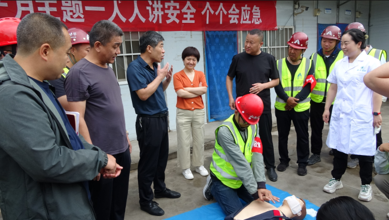 今年6月是我国第22个“安全生产月”,为了提高项目部一线人员对突发心跳呼吸骤停患者的应急抢救能力及抢救成功率。近日,山西安华本着“以人为本,安全至上”的原则,围绕“人人讲安全,个个会应急”活动主题,专门邀请了圣济医院护士长在安华·阳光嘉苑项目部为河津片区各项目部管理人员、工长和左右物业管理人员等组织开展了“心肺复苏术”培训,为一线人员上了一堂生动有趣而实用的培训课。培训内容以新版的《心肺复苏急救指南》为依据进行了详细讲解,并现场实际操作。