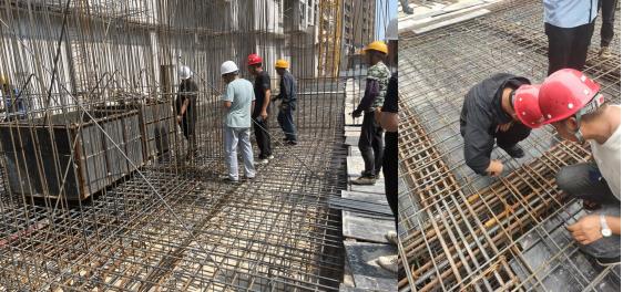 在中秋、国庆小长假期间,运城大学苑项目部全体管理人员坚守岗位,抢抓工期,利用假期时间,完成商铺一层混凝土浇筑和钢筋绑扎,并在钢筋绑扎完成后第一时间由项目技术负责人和技术人员至现场检查施工情况。外保温工作人员也在假期期间加班加点进行剩余6#和11#楼外保温工作,确保项目工期顺利完成。