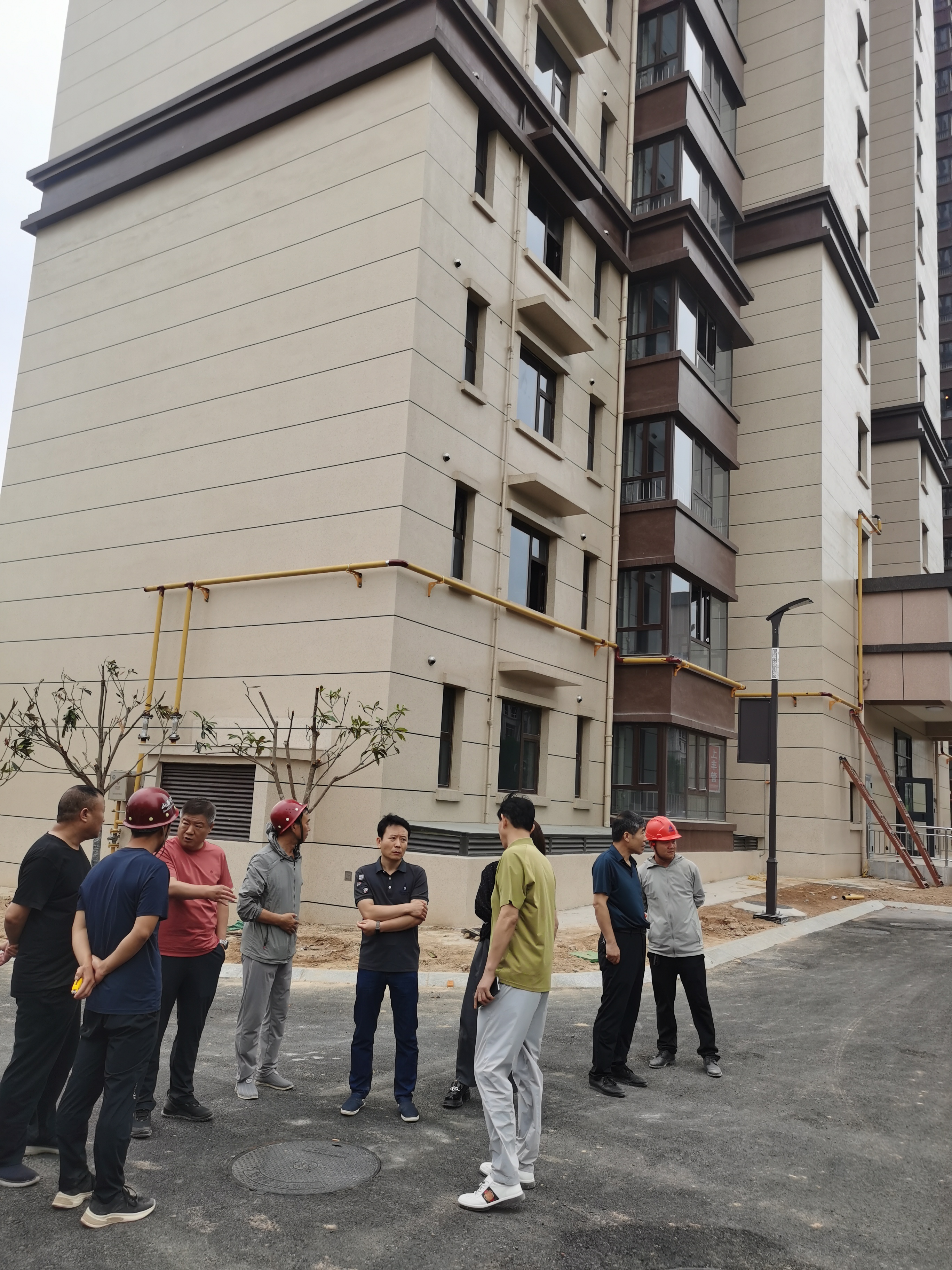 6月4日上午,公司总经理卫少华,常务副总张成伟,副总柴贵杰、闫俊康、张军喜,总工程师、工程管理部经理王效芳一行深入安华·阳光嘉苑项目施工现场,对项目的施工进度和工程质量进行了全面细致的检查,并对下一步的工作作了安排部署。