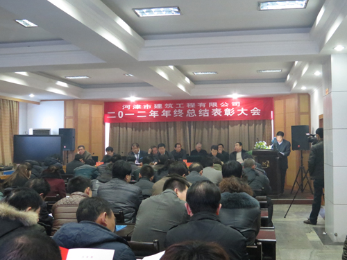 总经理卫少华在大会上作了《正视形势,突破危机,加快推进转型升级,为实现河建跨越发展目标而努力奋斗》的总结报告,报告对2012年工作做了全面总结:一、立足大市场,承揽大项目,促进大发展。二、突出优势,精细管理。三、安全为天,保障健康。四、加大人才引进,完善培养体系,以适应快速发展的需要。五、加强文明建设,打造企业文化。六、加强党建工作,发挥工会职能作用。七、进一步提高员工待遇,不断改善工作和生活环境。报告对2012年工作中存在的问题进行了深刻剖析,同时对2013年的重点工作做了安排部署。公司常务副总薛青苗宣读了全年总结评比结果,工会主席王启华主持了颁奖仪式,先进单位、个人代表作了表态发言。在颁奖仪式结束后,董事长胡胜合作了重要讲话,对公司2013年的工作提出七点意见:一、加快资质增项、升级,加大工程承揽力度。二、加强财务管理工作。三、加强安全生产管理工作。四、大力推进组织再造,加强部门职能联合,畅通内部管理关系,大力推进跨职能管理小组建设。五、加强党建和精神文明建设,提高企业和谐发展能力。六、积极引进和培养人才。七、加强领导班子建设。