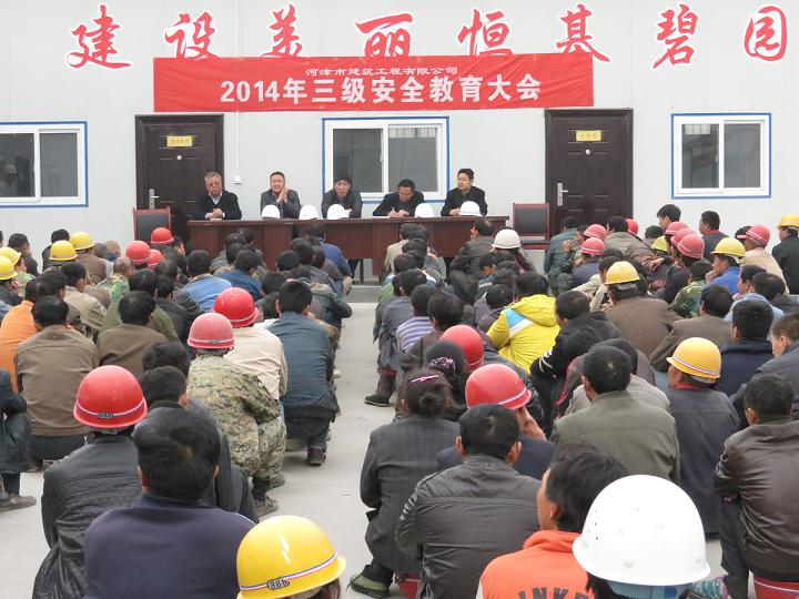 图为检查小组在恒基碧园项目部为施工人员开展三级安全教育活动现场。