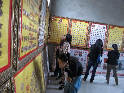 展览馆共展出像章4000余枚,丝织品画像40余幅,塑像20余座,其中像章由镀金、银、铜、有机玻璃、陶瓷、夜光灯十多种材料制成。像章图案以不同时期的毛泽东头像、半身像或全身像为主,多为红底金色,采用韶山、井冈山、遵义、延安、天安门等革命圣地作背景,形态各异,图案精美,生动展现了中国红色文化的魅力。在参观活动中,大家被我们伟大领袖毛泽东同志那种艰苦奋斗、不怕牺牲、誓将革命进行到底的精神所感动。大家纷纷表示,我们今天的幸福生活来之不易,大家有责任用行动将红色精神代代相传,在今后的工作中要坚定共产主义理想信念,发扬优良的革命传统,带头践行党的群众路线教育实践活动,以实际行动激发工作热情,落实工作目标。