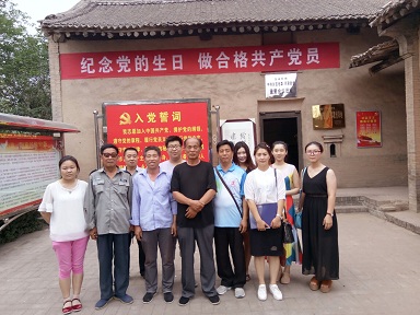 大家在新兴村村支书姚生民的带领讲解下先后参观了中共河津地下县委旧址、姚银德烈士故居、高峰夫妇旧居、“小朋友书店”、展览馆等处。在河津地下县委旧址大院前,物业部6名党员重温了入党誓词,传达“两学一做”学习教育活动精神,传播正能量,发挥先锋模范作用。其他人员表态要积极向党组织靠拢,争取早日参加中国共产党。随后大家参观了村东大槐树,站在具有灵性的大槐树下,仔细聆听老支书姚生民的讲解:这棵千年生长的老槐树在早年被雷电击打,她亲眼见证了一场惊天动地、壮怀激烈的红色革命,恰好在改革开放的年代,重新生长发芽,现如今伟岸挺拔、枝繁叶茂,像延安的宝塔一样,仍然凌霜傲雪屹立在新兴村东头,老槐树这种顽强的生命力,正如我们的共产党员一样,顽强不屈。
