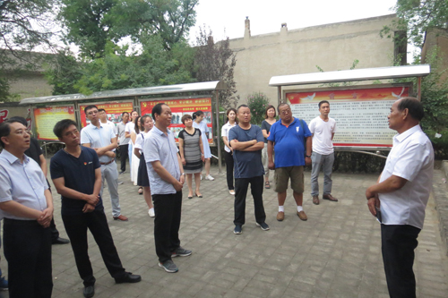 活动中,在中共河津地下县委旧址前,全体党员干部面对党旗,重温了入党誓词,新兴村村支书姚生民带领大家参观了新兴村中共河津地下县委旧址,详细讲解了抗战时期中共河津县委领导机构、抗战形势、抗日英雄事迹等,随后大家在讲解员的带领下先后参观了以职业为掩护的场所小朋友书店、中共张家庙支部、姚银德烈士故居、冯保娃同志故居等革命遗址。