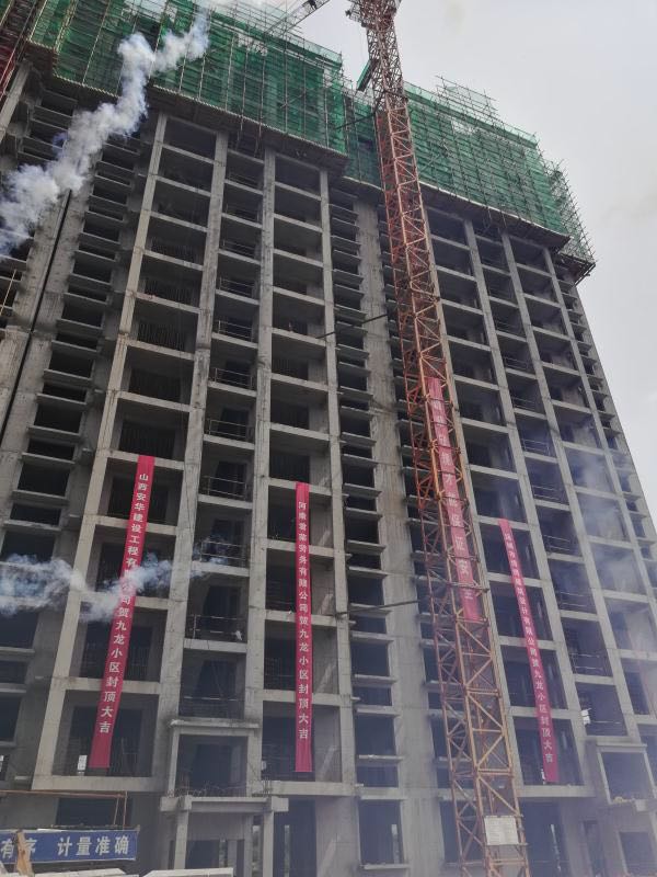 7月28日,由我公司承建的九龙小区9#楼顺利封顶,楼前彩旗飘飘,鞭炮齐鸣,人声鼎沸,甲方、监理、质监站、施工方等共同见证了这一荣耀时刻。