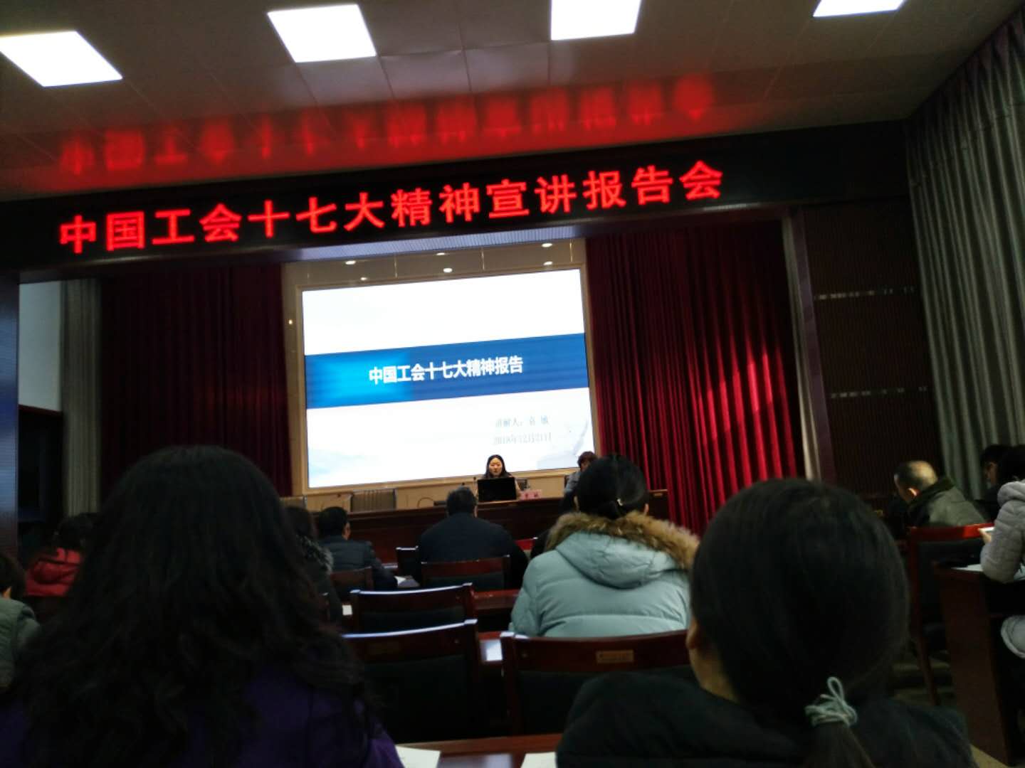 12月21日,市总工会举行中国工会十七大精神宣讲报告会,深入学习宣传习近平总书记在同全国总工会新一届领导班子成员集体谈话时的重要讲话精神,贯彻落实中国工会第十七次全国代表大会精神。我公司工会主席黄建荣参加学习。