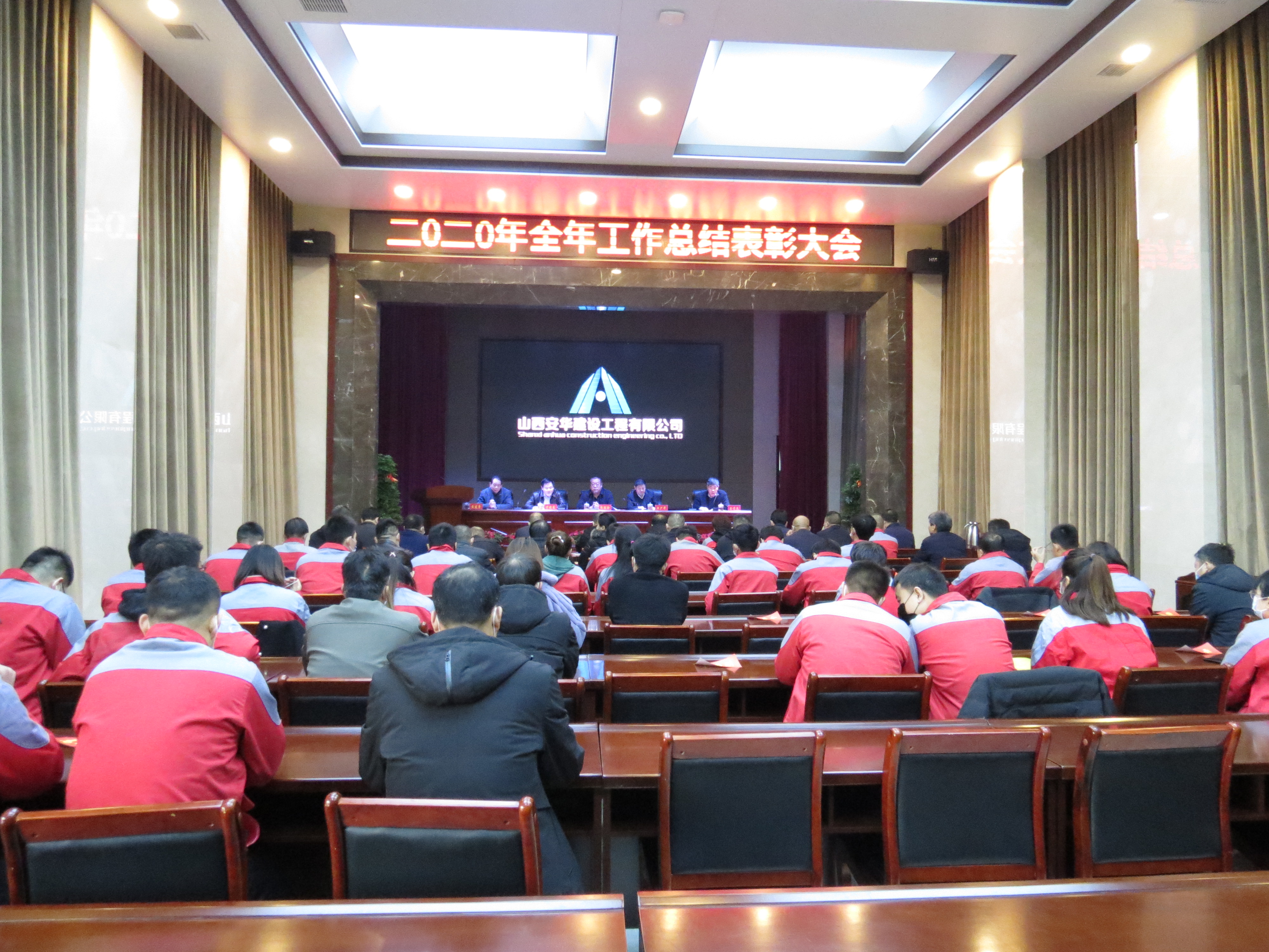 2月6日,公司2020年工作总结暨表彰大会在一楼会议中心召开,公司党总支书记胡胜合,总经理卫少华,党总支副书记、工会主席黄建荣,副总柴贵杰、闫俊康、李克信,总工张军喜等领导及机关各部室负责人、各项目负责人、优秀管理人员及学习标兵等参加会议。会议由公司副总谭晓森主持。