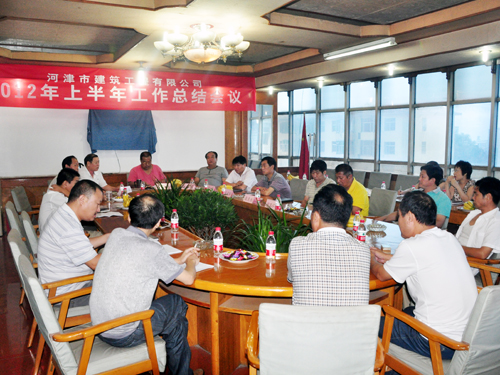 总经理卫少华在2012年上半年工作总结中指出:2012上半年,是公司经历二十年高速发展后,进行产业结构调整,全面转型升级的关键时期,在公司董事会的正确决策、总经理班子齐心协力和全体员工的共同努力下,创省标准化工地1项,安全事故率为零,各项经济指标比去年都有了很大提高,公司荣获“全国优秀施工企业”。卫总在全面总结上半年工作的基础上,客观地总结了公司目前存在的各种问题,并对下半年的工作作了全面安排部署,提出了“4321”的经营理念:四是做强四大区域市场,三是建筑施工、房地产开发、建材销售和设备租赁三大业务版块齐头并进,二是以企业文化为支撑,尽快构建人才梯队和历史遗留问题的处理,一是要实现一个目标。卫总最后号召全体干部职工弘扬河建精神,坚持科学创新,实现打造河建品牌的终极目标,让大家以更加饱满的工作热情,迎接新的挑战,为公司作出更大的贡献。